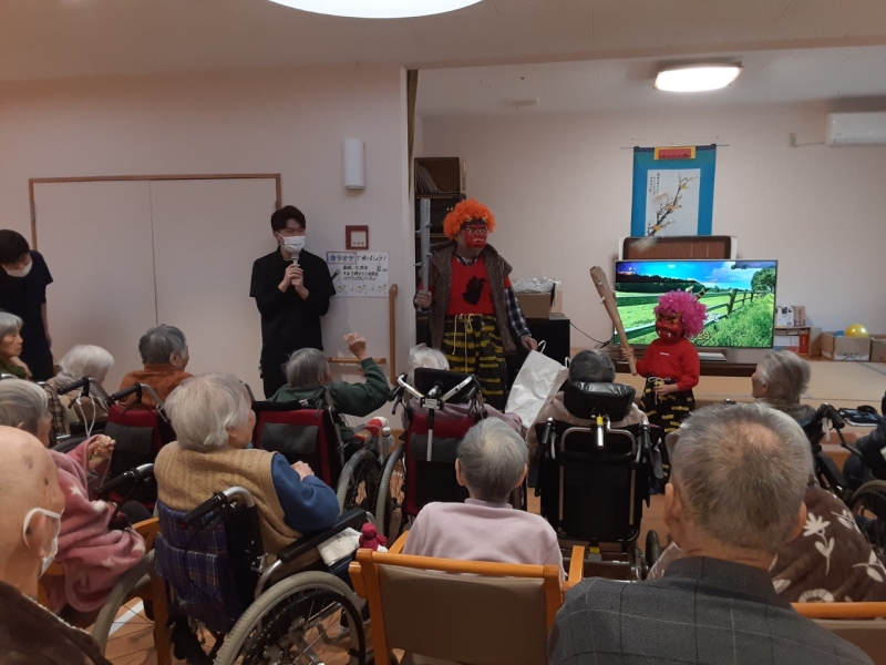 今日は節分です、親子鬼がやってきました、可愛い鬼に皆大喜びでした(令和8年2月3日)